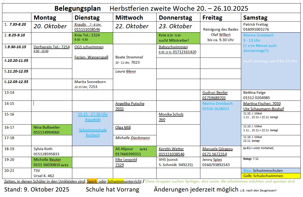 Vom 13. bis 19.10 hat das Bad geschlossen (=1. Ferienwoche)
