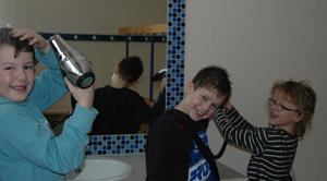 Bild: David, Fabian und Linus, (kleine Elche): Schüler der dritten Klasse nach dem Schwimmunterricht.