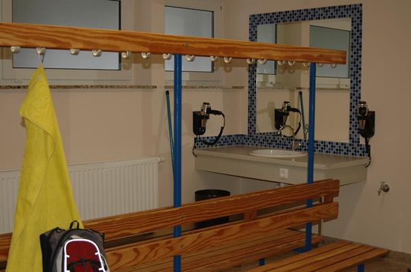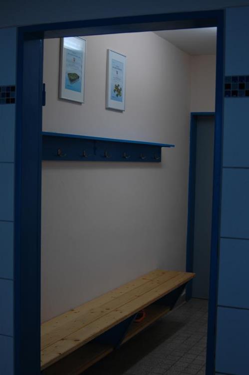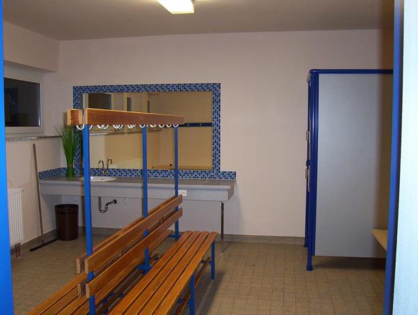 Die Herrenumkleide (renoviert Januar 2013) ist mit zwei beweglichen Fönen sowie einem Waschbecken und Steckdose ausgerüstet.